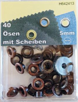 Ösen + Scheiben, 5 mm, brüniert, mit Werkzeug